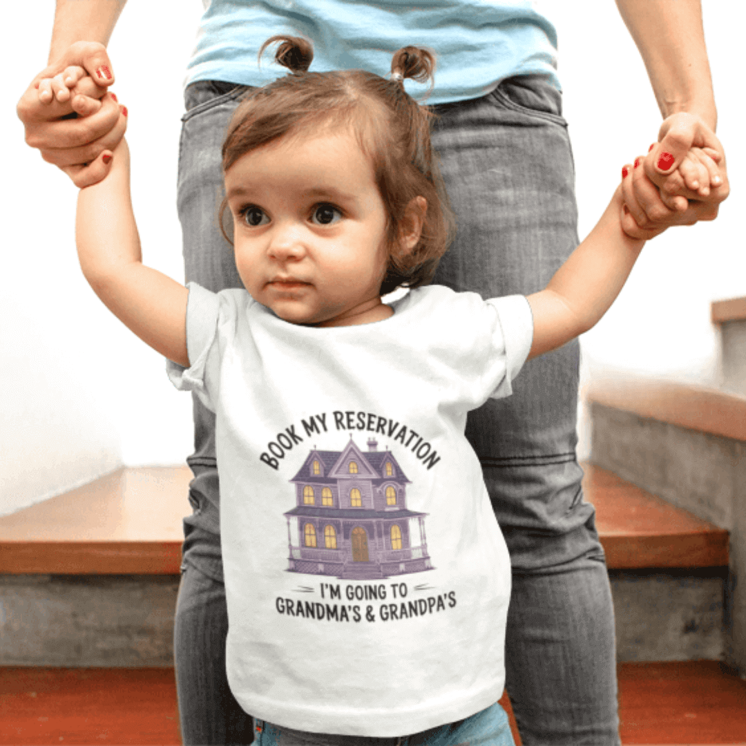 Show off your little one’s excitement for family time with our “Book My Reservation, I’m Going to Grandma & Grandpa” Tee! Perfect for babies and toddlers who love visiting their grandparents, this adorable design adds charm to family outings, playdates, and photos. Made from soft, breathable cotton, it keeps your child comfy while celebrating those special grandparent bonds. A thoughtful gift for birthdays, holidays, or just because — available in baby bodysuit and toddler tee sizes for the perfect fit.