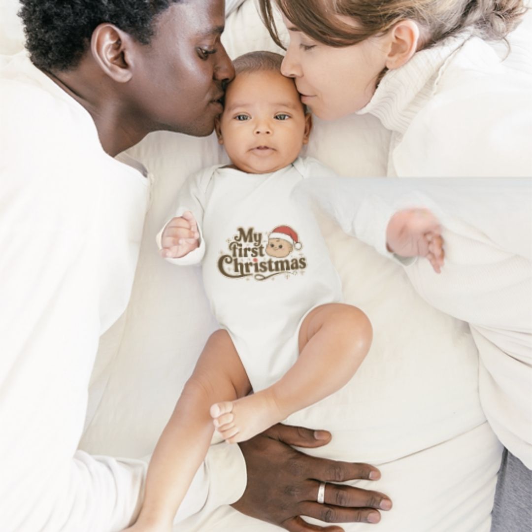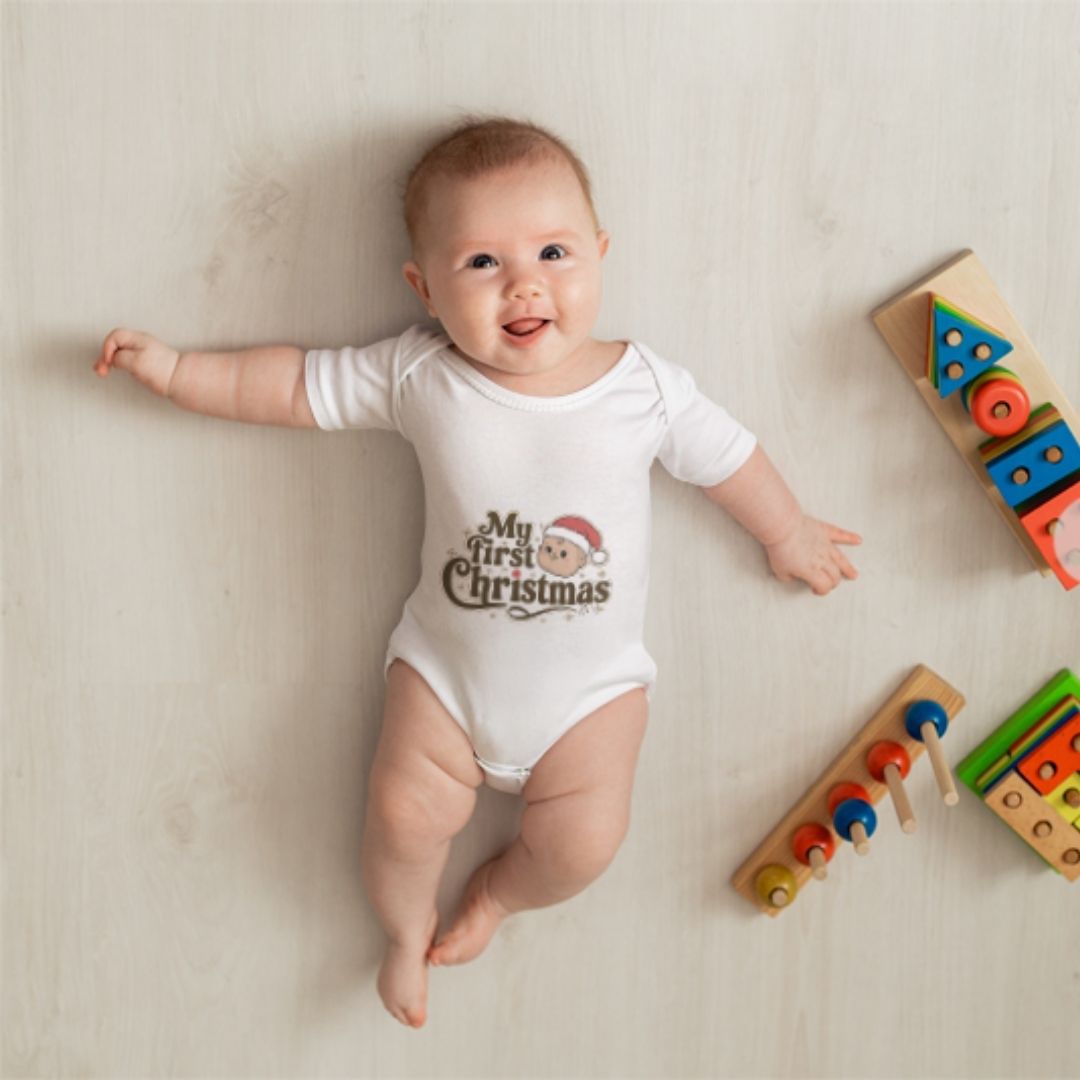 Celebrate your little one’s very first holiday season with our “My First Christmas” Baby Bodysuit! Adorable and festive, this design is perfect for holiday photos, family gatherings, and special Christmas memories. Made from soft, breathable cotton, it keeps your baby cozy and comfortable all day long. A thoughtful gift for newborns, baby showers, or holiday surprises — available in multiple sizes for the perfect fit.
