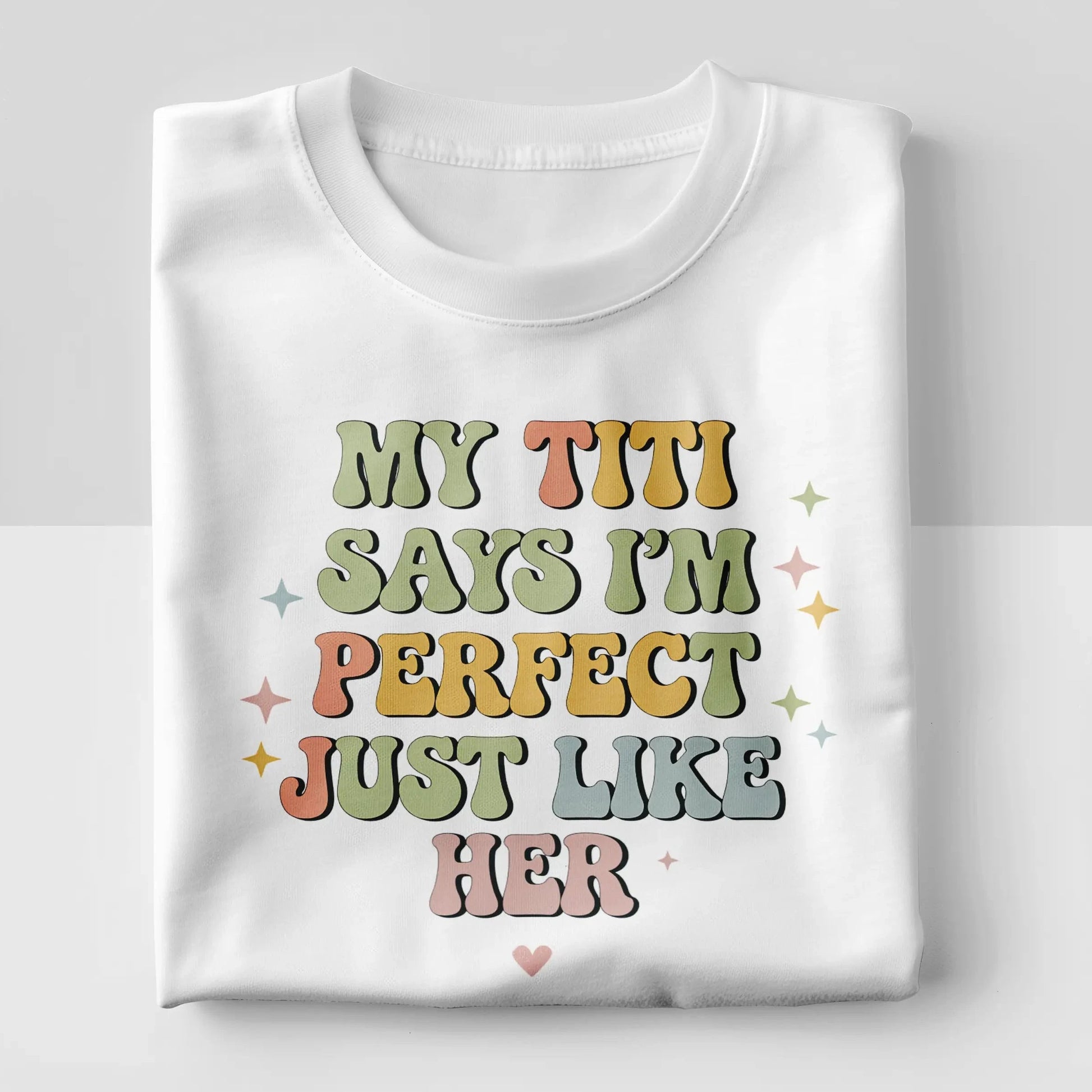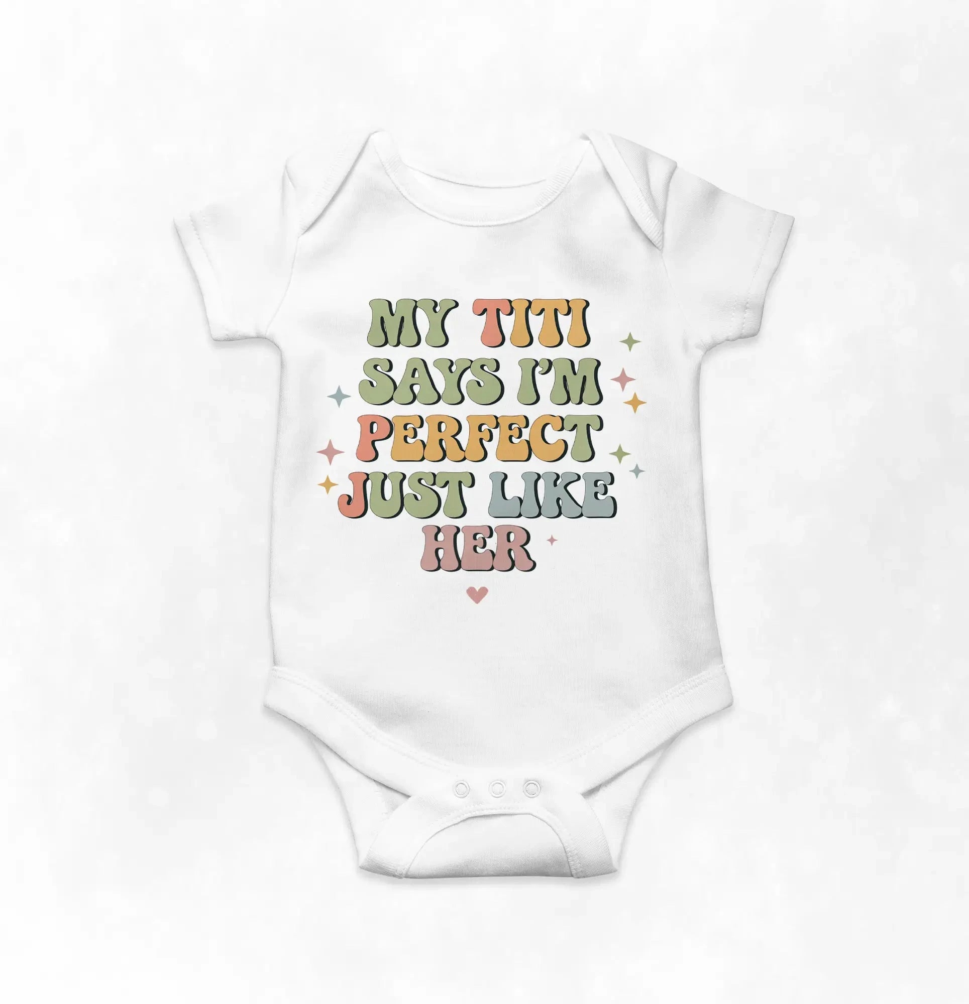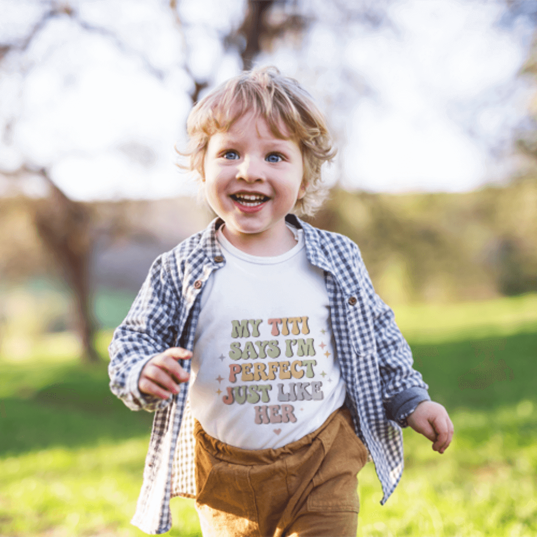 Celebrate the special bond between your little one and their Titi with our “My Titi Says I'm Perfect Just Like Her” Tee! Perfect for family outings, photos, or everyday adventures, this adorable design spreads smiles and love wherever it goes. Made from soft, high-quality cotton, it keeps your little star comfy all day long. A thoughtful gift for birthdays, holidays, or just because — available in baby bodysuit and toddler tee sizes for the perfect fit.