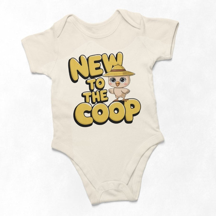 Welcome your little one to the world with our “New to the Coop” Farm Animal Bodysuit! Featuring adorable farm animal designs, this playful bodysuit is perfect for family photos, playdates, or everyday adventures. Made from soft, breathable cotton, it keeps your baby comfy while showing off their “freshly hatched” personality. A fun and thoughtful gift for baby showers, birthdays, or just because — available in multiple baby sizes for the perfect fit.
