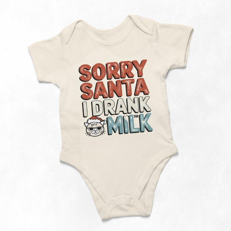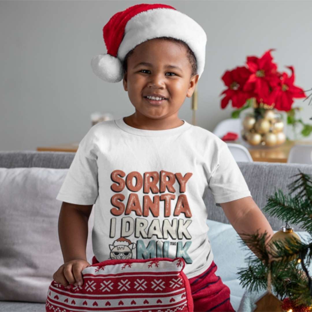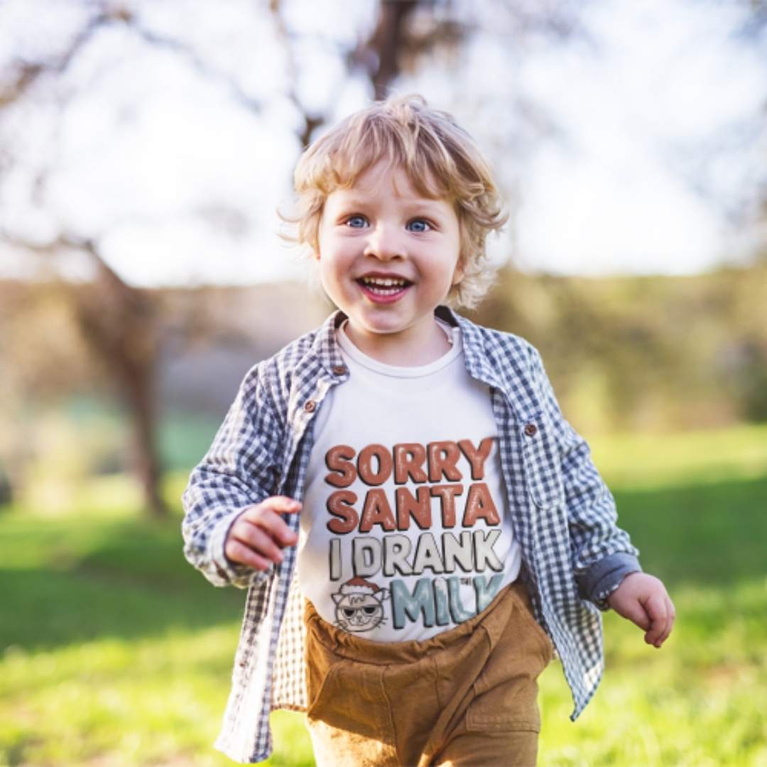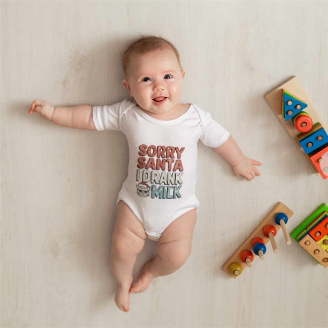 Add some holiday humor with our “Sorry Santa, I Drank The Milk” Christmas Tee! Perfect for babies and toddlers who love to steal the spotlight (and maybe a cookie or two), this adorable design brings laughs to family gatherings, holiday photos, and seasonal fun. Made from soft, breathable cotton, it keeps your little one comfy while spreading festive cheer. A fun and memorable gift for Christmas, birthdays, or just because — available in baby bodysuit and toddler tee sizes for the perfect fit.