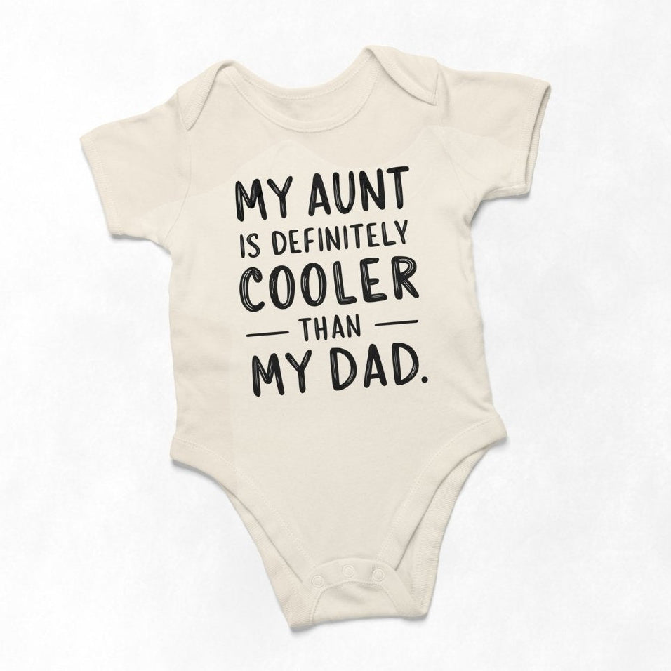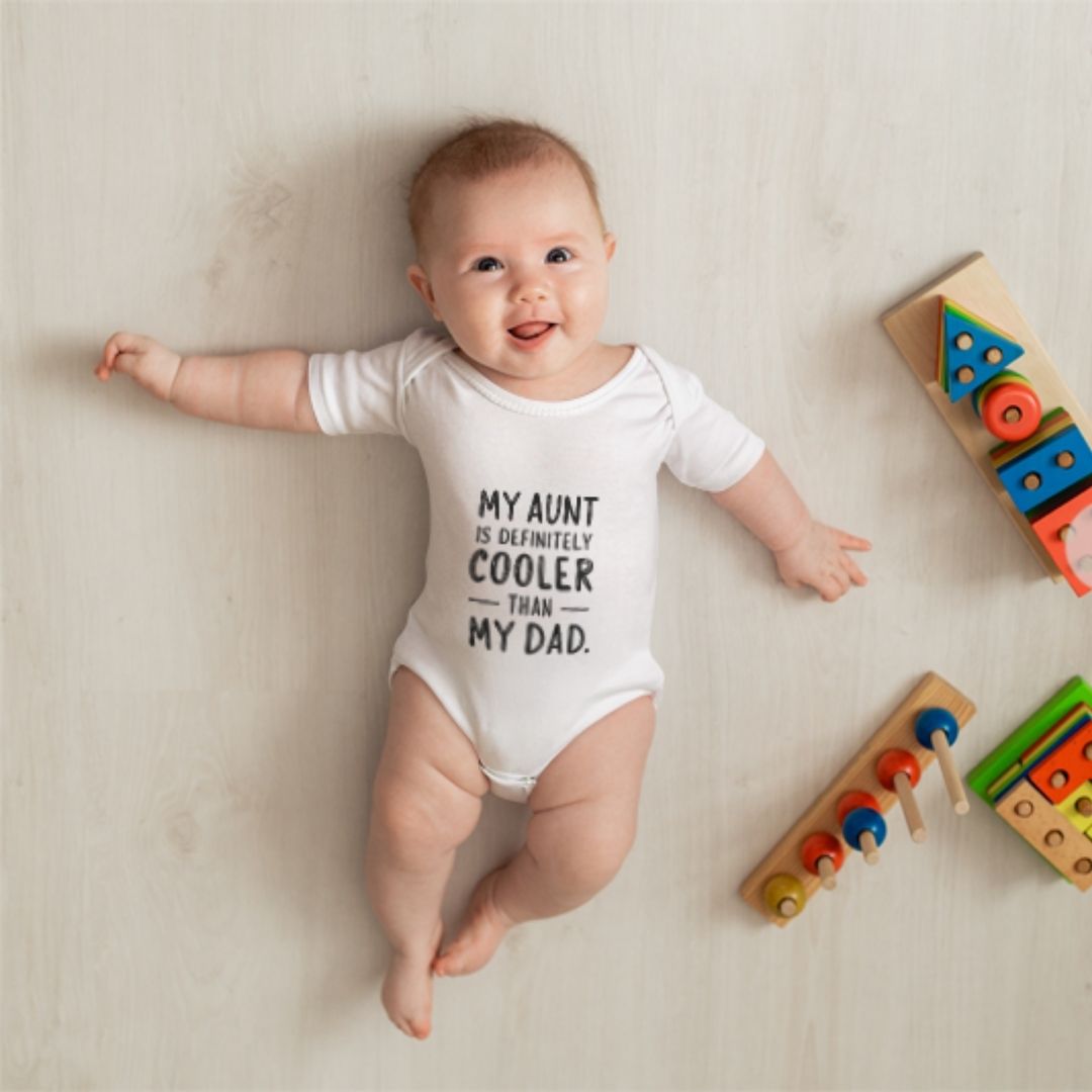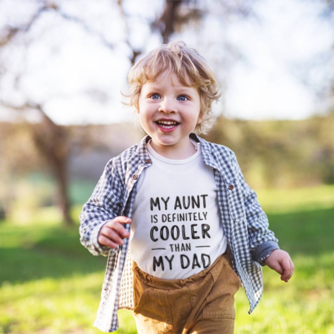 Celebrate the fun and loving bond between your little one and their cool aunt with our “My Aunt Is Definitely Cooler Than My Dad” Tee! Perfect for playdates, family gatherings, or adorable photos, this playful design is sure to bring laughs and smiles to everyone around. Crafted from soft, premium cotton, it keeps your baby or toddler cozy and comfortable all day long. A fun and thoughtful gift for baby showers, birthdays, or just because — available in both baby bodysuit and toddler tee sizes for the perfect fit.